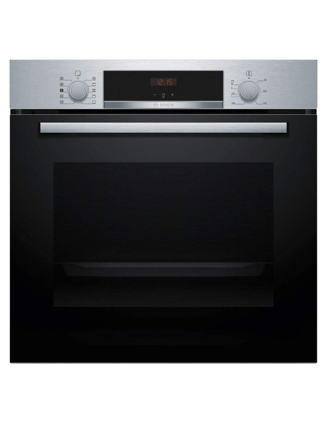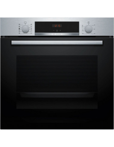 BOSCHHQA514ES3, Horno, Multifunción con vapor añadido, A+, Integrable, 60 cm., 71 l., 8 F., Asistente de limpieza con agua, Ap. Abatible, Cristal negro/inox, Display LED, Reloj electrónico con programación de inicio y paro, Railes 1 nivel, Mandos ocultables.